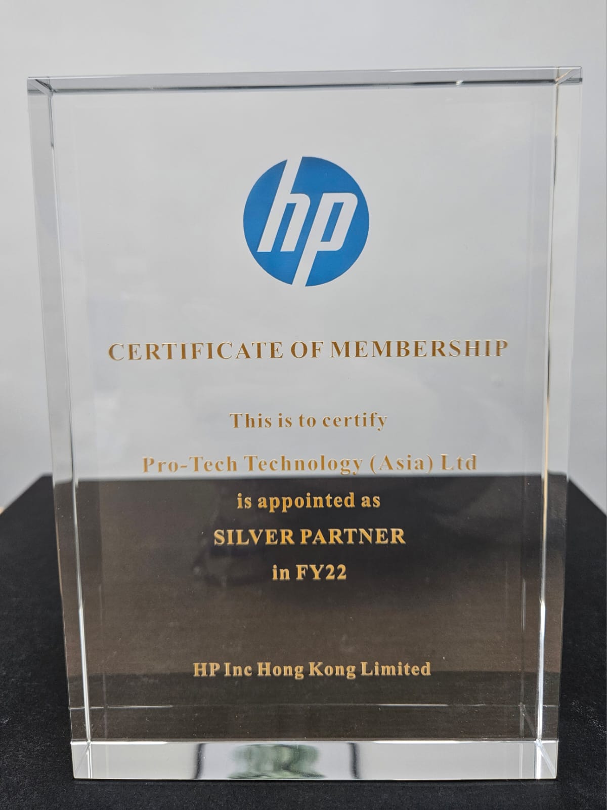 Pro-Tech Technology has a good collaboration with HP by providing the best solutions and most suitable products to our customers throughout 2022. We are glad to be appointed as the Silver Partner in 2022 by HP Inc Hong Kong Limited. It is our honor to have this recognition from HP, and we will keep this up to provide best services.